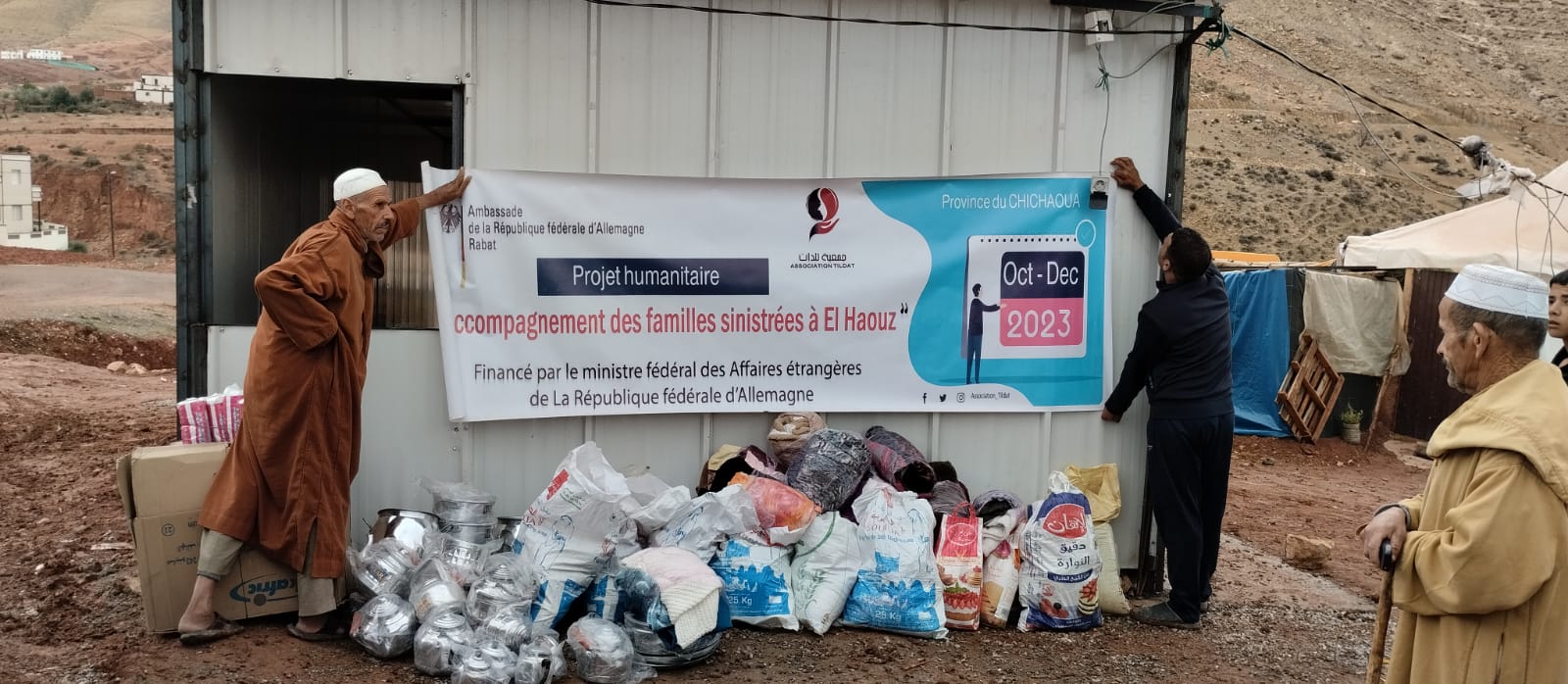 بدءا من شهر اكتوبر 2023 وعلى مدى ثلاثة أشهر. و أوضح البلاغ أن جمعية تلدات، نفذت مكونات المشروع الاستعجالي “دعم عائلات ضحايا زلزال الحوز 2023″، الممول من طرف وزارة الشؤون الخارجية لجمهورية المانيا الاتحادية، حيث عرف تنزيل هذا المشروع استهداف سبعة عشر دوارا تقع بسبع جماعات ترابية بإقليم شيشاوة، الأكثر تضررا من زلزال 8 شتنبر 2023.