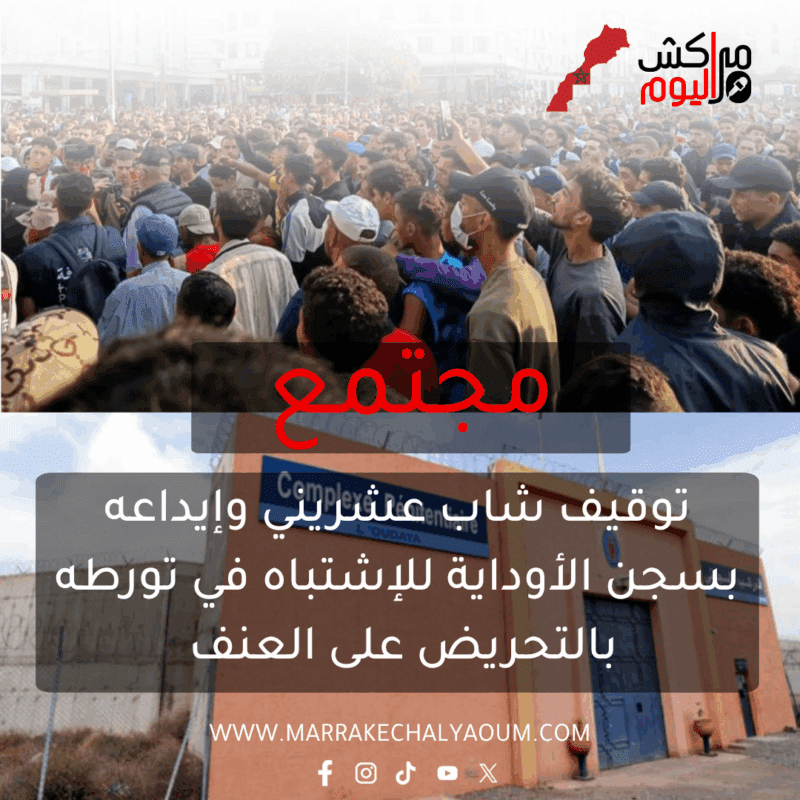 على خلفية الاحتجاجات المتعلقة بقضايا “جيل Z” تم اعتقال شاب عشريني وإيداعه بسجن الأوداية بناء على قرار المحكمة الابتدائية بإمينتانوت، للإشتباه في تورطه بنشر محتوى رقمي على تطبيق “واتساب” يحرض محتجي “جيل Z” على العنف والعصيان إلى غاية تحقيق المطالب المرجوة.