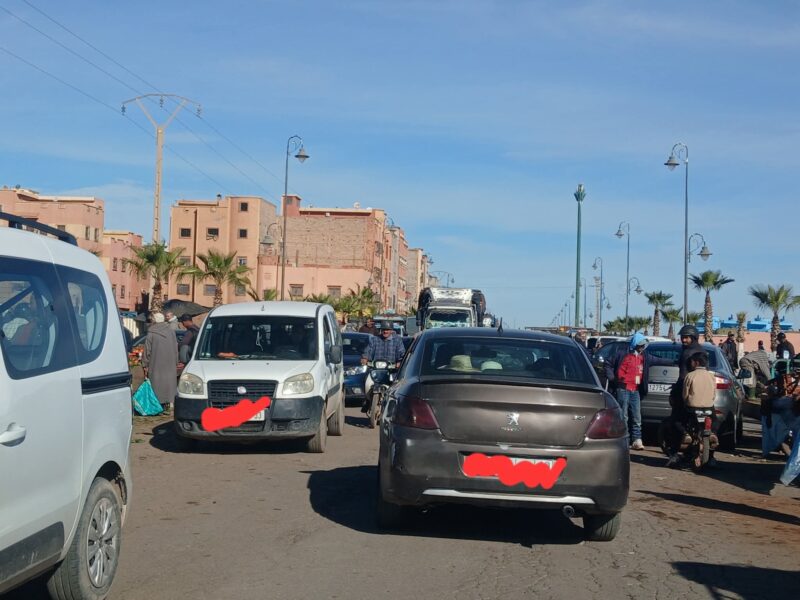 ويؤدي توافد أعداد كبيرة من السيارات والشاحنات والعربات، إلى جانب الباعة والمتسوقين، إلى تفاقم الضغط على محور طرقي يُعد من الممرات الرئيسية بالمدينة، حيث تمر عبره الحركة اليومية للمواطنين ووسائل النقل، في ظل غياب تهيئة مرورية قادرة على استيعاب هذا الكم من الحركية.
