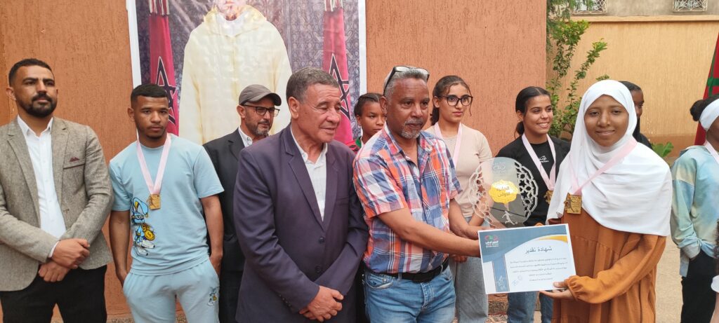 وفي تصريحه لمراسل الجريدة ، أضاف المسؤول عن اللجنة التقنية للتظاهرة أن التعاون الوطني يولي اهتماما كبيرا بالتنشيط الرياضي والثقافي بالمؤسسات والمراكز الاجتماعية ، اقتناعا بكونه رافعة حقيقية للإدماج الاجتماعي، ووسيلة هامة للمساهمة في هذا الإدماج وتقويم السلوك الإنساني لدى الشباب، بما تتيحه من فرص للتنافس والتعارف وإذكاء روح الجماعة، وزرع قيم المواطنة والمحبة والتسامح في نفوس الممارسين الرياضيين ، وتمتين العلاقات الاجتماعية والوطنية بينهم بما يحقق الإدماج الاجتماعي للفئات المستفيدة من خدماته. كما تقدم السيد مدير التعاون الوطني بالمناسبة بالشكر لكل الفئات التي ساهمت على إنجاح هذا الحفل الختامي. وكما القى ممثل الامن الوطني بمفوضية العطاوية كلمة شكر فيها جميع المنظمين والمساهمين في إنجاح هذه التظاهرة كما أضاف بان الامن الوطني بالعطاوية عمل تامين التظاهرة بجميع النقط التي جرت بها التظاهرة الناجحة .