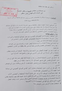 هذا وتضمنت العريضة اتهامات لمدير المصالح بتجاوز دوره الإداري والتدخل في الشؤون التنظيمية للمجلس دون تفويض، إضافة إلى خلق أجواء من التوتر داخل المؤسسة وتعطيل السير العادي للعمل، فضلاً عن استعمال سيارة الرئيس في غياب أي سند قانوني.