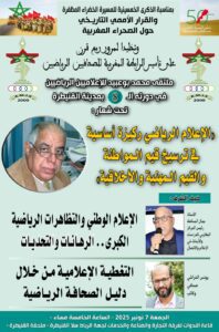 و تتضمن محاور الندوة ” الإعلام الوطني والتظاهرات الرياضية الكبرى.. الرهانات والتحديات ” من تاطير الأستاذ جمال المحافظ رئيس المركز المغاربي للدراسات والأبحاث في الإعلام والاتصال.