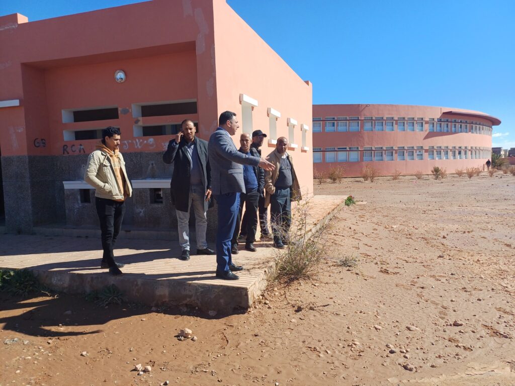وفي هذا السياق، ترأس المدير الإقليمي صباح الخميس 6 مارس 2025، لجنة إقليمية ضمت رؤساء مصالح الشؤون الإدارية والمالية، والبناءات والتجهيز والممتلكات، والشؤون القانونية والتواصل والشراكة، والشؤون التربوية، بالإضافة إلى موظف عن مكتب الصحة المدرسية ورئيس مكتب السكنيات. وقامت اللجنة بزيارة ميدانية للوقوف على حجم الأضرار وتقييم التدخلات اللازمة لإصلاح مرافق المؤسسة المتضررة.