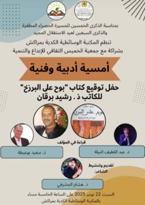افاد بلاغ صحفي للمكتبة الوسائطية الكدية تنظيم أمسية أدبية فنية تنضح بسحر القصيد وإيقاع الوتر، تخليداً للذكرى الخمسين للمسيرة الخضراء المظفرة، والذكرى السبعين لعيد الاستقلال المجيد، تحت إشراف المديرية الجهوية للثقافة مراكش–آسفي، وبشراكة مع جمعية الخميس الثقافي للإبداع والتنمية، أمسية أدبية وفنية يوم السبت 22 نونبر 2025، ابتداءً من الساعة الخامسة مساءً بقاعة الندوات للمكتبة.