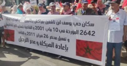 أفاد بلاغ إلى الرأي العام لمجموعة من ساكنة الحي العسكري يوسف بن تاشفين المهددين بالهدم و الترحيل القسري، انهم خاضوا مختلف الأشكال الاحتجاجية للدفاع عن مطالبهم المشروعة في السكن اللائق و الكرامة وجبر الضرر، وفق القوانين و التشريعات الجاري بها العمل، و للترافع عنها عبر مراسلات متعددة بما في ذلك طرق جميع الأبواب التي أكدت عزمها على الدعم والمساندة.