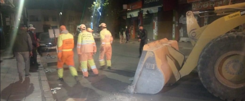أشرف باشا المنطقة الحضرية جامع الفنا بمقاطعة مراكش المدينة، مرفوقا بقواد الملحفات الإدارية : اللانية، جامع الفنا،باب دكالة ليلة الخميس 29 ابريل الجاري على تحرير الملك العام بالعديد من ال؛ وارع. الأزقة الاي تقع في نفوذ المنطقة الحضرية المذكورة.