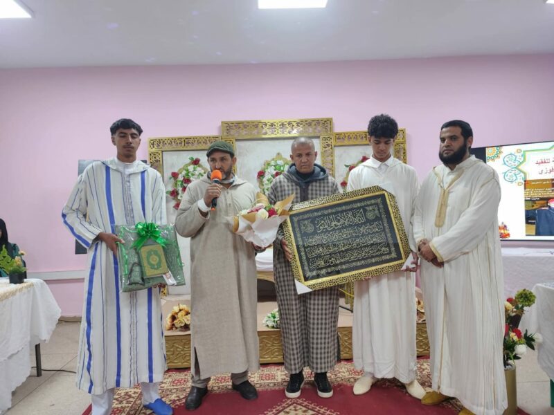 كما عرف الحفل تكريم التلاميذ المشاركين تقديراً لجهودهم في حفظ القرآن الكريم وإتقان قواعد تلاوته، حيث جرى توزيع شواهد تقديرية تشجيعاً لهم على مواصلة مسارهم في خدمة كتاب الله وتعزيز ارتباطهم بالقيم الدينية.