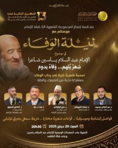 وستُخصص هذه الأمسية، التي تنطلق على الساعة الثامنة والنصف مساءً، للاحتفاء بالتجربة الشعرية للإمام عبد السلام ياسين، تحت شعار «شعر يُلهم… وفاءٌ يدوم»، حيث تجمع بين القراءة الشعرية، والتأمل الفكري، والبعد الجمالي، في سياق استحضار الإرث الإبداعي والفكري للإمام.