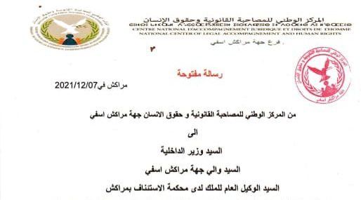 وجه المركز الوطني للمصاحبة القانونية وحقوق الانسان أمس الثلاثاء 7دجنبر الجاري رسالة إلى كل من وزير الداخلية و والي جهة مراكش أسفي و الوكيل العام للملك بمحكمة الاستئناف بمراكش تفيد تعرض أحد الأشخاص “م ح ” للشطط في إستعمال السلطة حيث عمد قائد قيادة السويهلة رفقة مجموعة من أعوان السلطة والقوات المساعدة إلى كسر باب منزل الشخص المتضرر وتعريض أفراد أسرته إلى التعنيف اللفظي والجسدي .