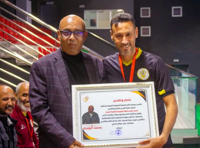 وتضمن الحفل أيضاً تكريم عدد من الشخصيات التي ساهمت في تطوير الرياضة بالجهة من بينهم رئيس العصبة الجهوية السيد محمد الرويجل ونائبه السيد سيدي الوالي أباه والكاتب العام السيد إبراهيم الضو بالإضافة إلى تقنيي اللجنة الإعلامية وجمعية موظفي بلدية العيون.