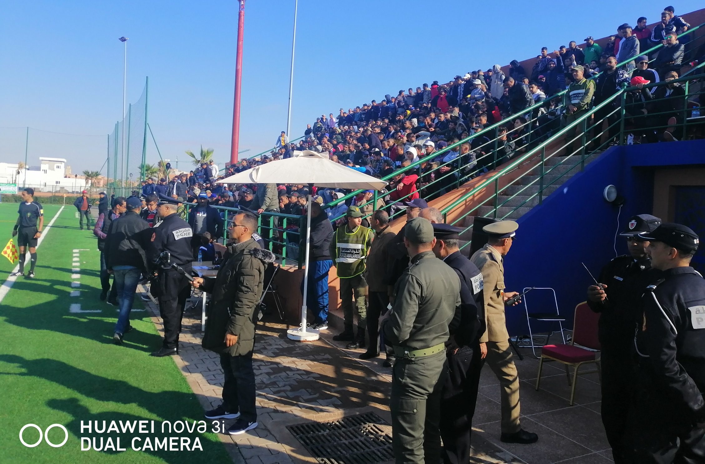 و التي شهدت حضورا جماهيريا غفيرا فاق الطاقة الاستيعابية لمدرجات ملعب المحاميد الذي تم إنشاءه في إطار الحاضرة المتجددة، الحضور الذي واكبته تغطية امنية مهمة، تميزت بزيارة تفقدية لوالي الأمن الذي وقف على الترتيبات التي عهد بها للمنط الأمنية الرابعة.