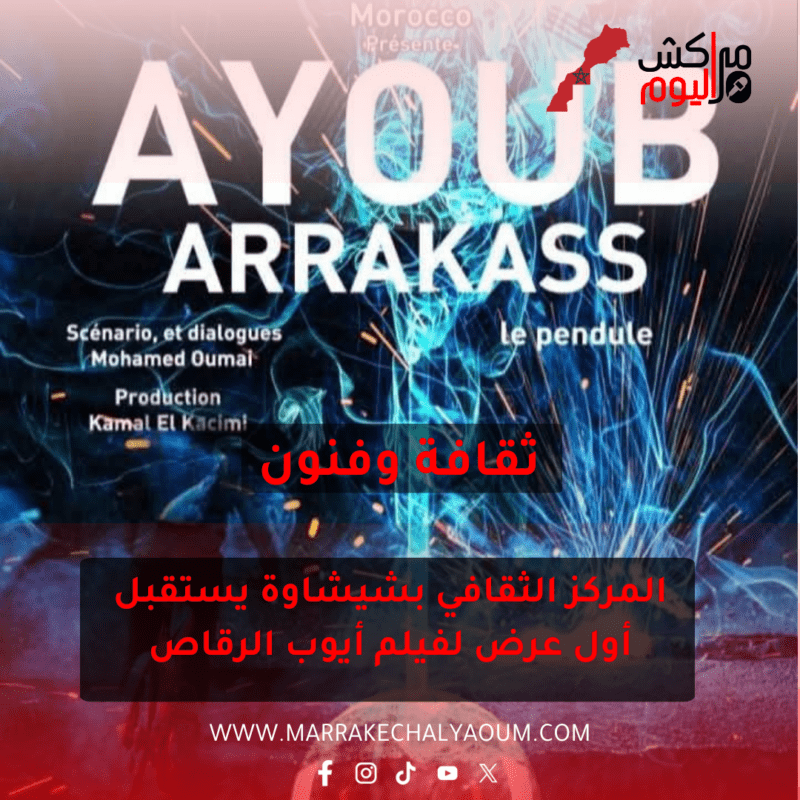 من انتاج شركة ريف فيلم لمؤسسها السيد كمال القاسيمي، واخراج وسيناريو الفنان محمد أوماعي ، تحتضن مدينة شيشاوة مساء يوم السبت 7 فبراير 2026، على الساعة السادسة بالمركب الثقافي، العرض الأول للفيلم القصير “أيوب الرقاص” “le pendule”، وهو عمل سينمائي روائي اجتماعي وإنساني