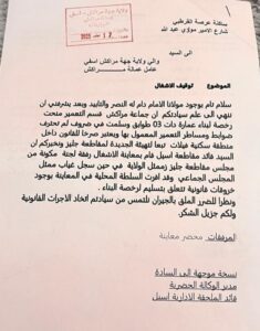 وهي الشكاية التي تم إرسالها مع محضر المعاينة الى كل من : مدير الوكالة الحضرية، قائد الملحقة الإدارية اسيل .