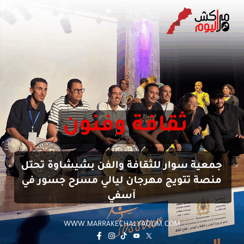 أسدل ستار المهرجان الدولي ليالي مسرح جسور في دورته الـ 14 بتتويج جمعية سوار للثقافة والفن شيشاوة بـ:
