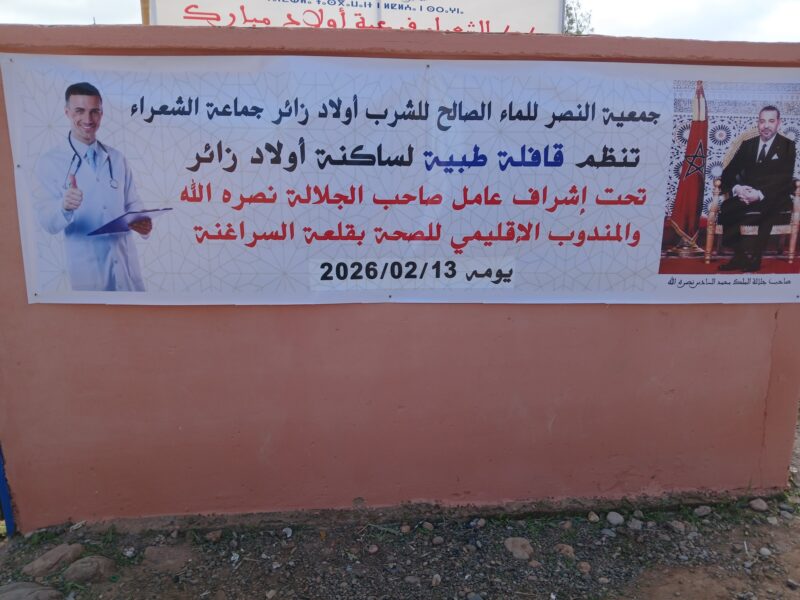 في إطار الجهود الرامية إلى تعزيز العرض الصحي وتقريب الخدمات الطبية من ساكنة العالم القروي، نظّمت جمعية النصر للماء الصالح للشرب أولاد زعر، بجماعة الشعراء، قافلة طبية لفائدة ساكنة دوار أولاد زعر، وذلك يوم 13 فبراير 2026.
