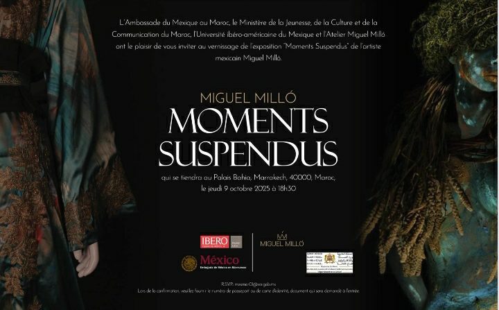 في إطار التعاون الثقافي بين المغرب والمكسيك، تنظم سفارة المكسيك بالمغرب، ووزارة الشباب والثقافة والتواصل، وجامعة إيبيرو-أمريكانا بالمكسيك، ومرسم ميغيل ميو، معرضًا فنّيًا بعنوان “Moments Suspendus” (لحظات معلّقة) للفنان المكسيكي ميغيل ميو.