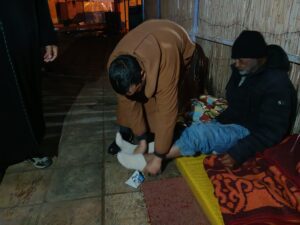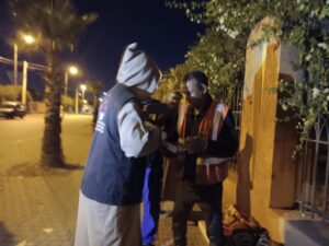 وانطلقت الجولة الإنسانية ابتداءً من الساعة التاسعة ليلاً، لتشمل مختلف أحياء المدينة بهدف الوصول إلى أكبر عدد ممكن من الأشخاص بدون مأوى الذين يفترشون الأرض وتغطيهم السماء