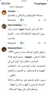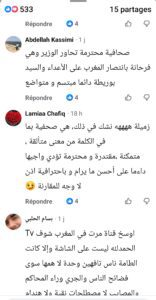 و فيما يلي بعض التدوينات التي استنكرت ” ميساج ” شوف تيفي لسناء رحيمي :