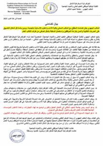 واختتم البيان بالدعوة إلى تدخل عاجل من قبل رئيس الجامعة والجهات الوصية لوقف التجاوزات، وإعادة الاعتبار للمؤسسات الجامعية كفضاءات للحوار الديمقراطي والمسؤول، مؤكداً على أن التضامن النقابي ووحدة الصف بين الموظفين هي الضمانة الأساسية لحماية المكتسبات وضمان كرامة العاملين.
