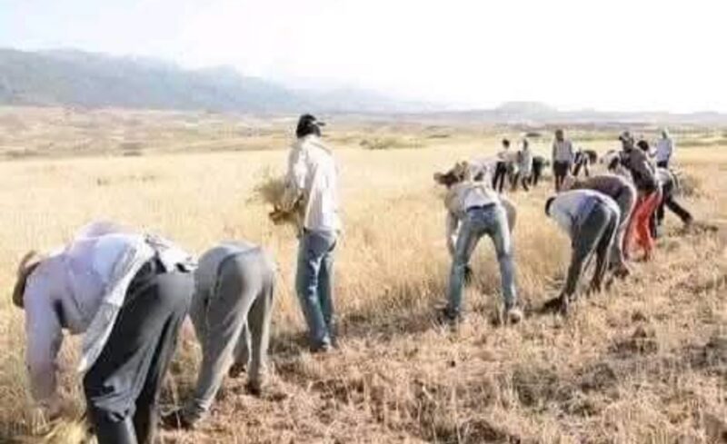تشتد حرَارة الشمس ، وتتطاير حشرات بوقرّاش بأرجاء الحَصيدة .. بينما يبحث الأطفال عن أعشَاش القوبع وقد انفتحت أفواه صَفراء متراصّة ، معتقدةً أن كل خشخة يعقبها الحُصُول على رزق وَفير من الحشرات والدّيدان ..أطفال آخرون يمطّطون لغمار في أكوَام منتظمة بشكل بديع ، كي يسهل جمعه في الرفدة على ظهور الجمال .. أما نساء السّاحل والتيرس أيضاً وجحَافل أطفالهم فيستعدون لمداهمة الفدان من أجل التقاط السنابل الشاردة هنا وهناك حين ينادي ولد بوعلاَم ، أو الجّيلالي ولد قدّور