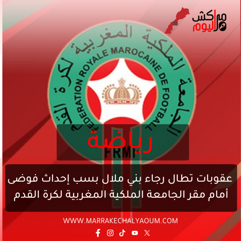 عقوبات تأديبية تطال رجاء بني ملال بسبب إحداث فوضى أمام مقر الجامعة الملكية المغربية لكرة القدم أصدرت لجنة الأخلاقيات عقوبات صارمة بحق مسيرين من فريق...