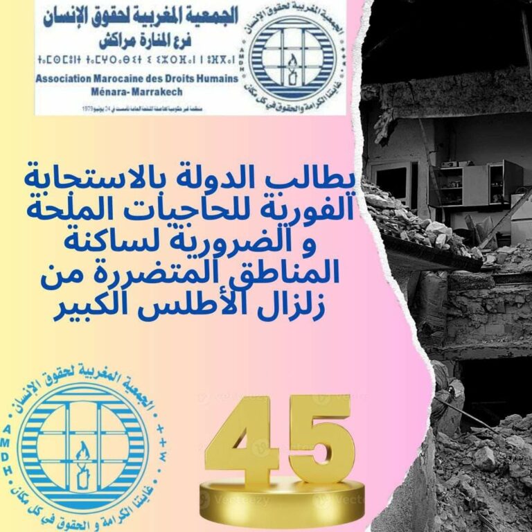 أفاد بلاغ للجمعية المغربية لحقوق الإنسان انه تم اعتقال 4 نساء من” دوار اللانمز غني” جماعة اجوكاك قيادة ثلاث نيعقوب إقليم الحوز اجوكاك من طرف...