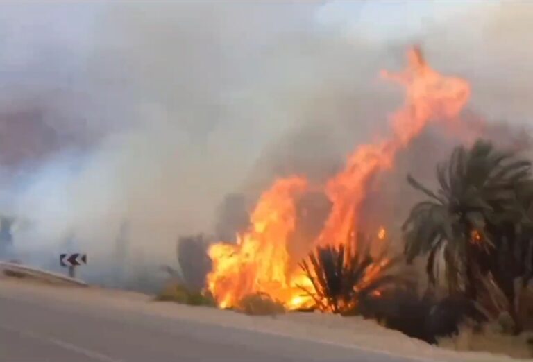 حوادثحريق ضخم يلتهم أشجار النخيل بتنغير