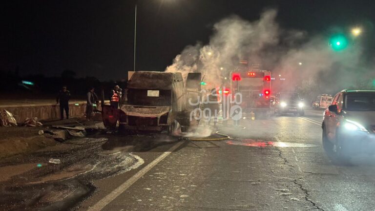 حوادثاندلاع حريق بسيارة لنقل المواد الغذائية
